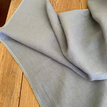 Choosing a delicious blue/grey linen, perhaps the lightweight Seaweed Linen or the Antique Wash Steel Grey Linen - the blue section of the colour wheel is the obvious starting off point. The bespoke Capel W is a beautiful hue and perfect to set the tone..