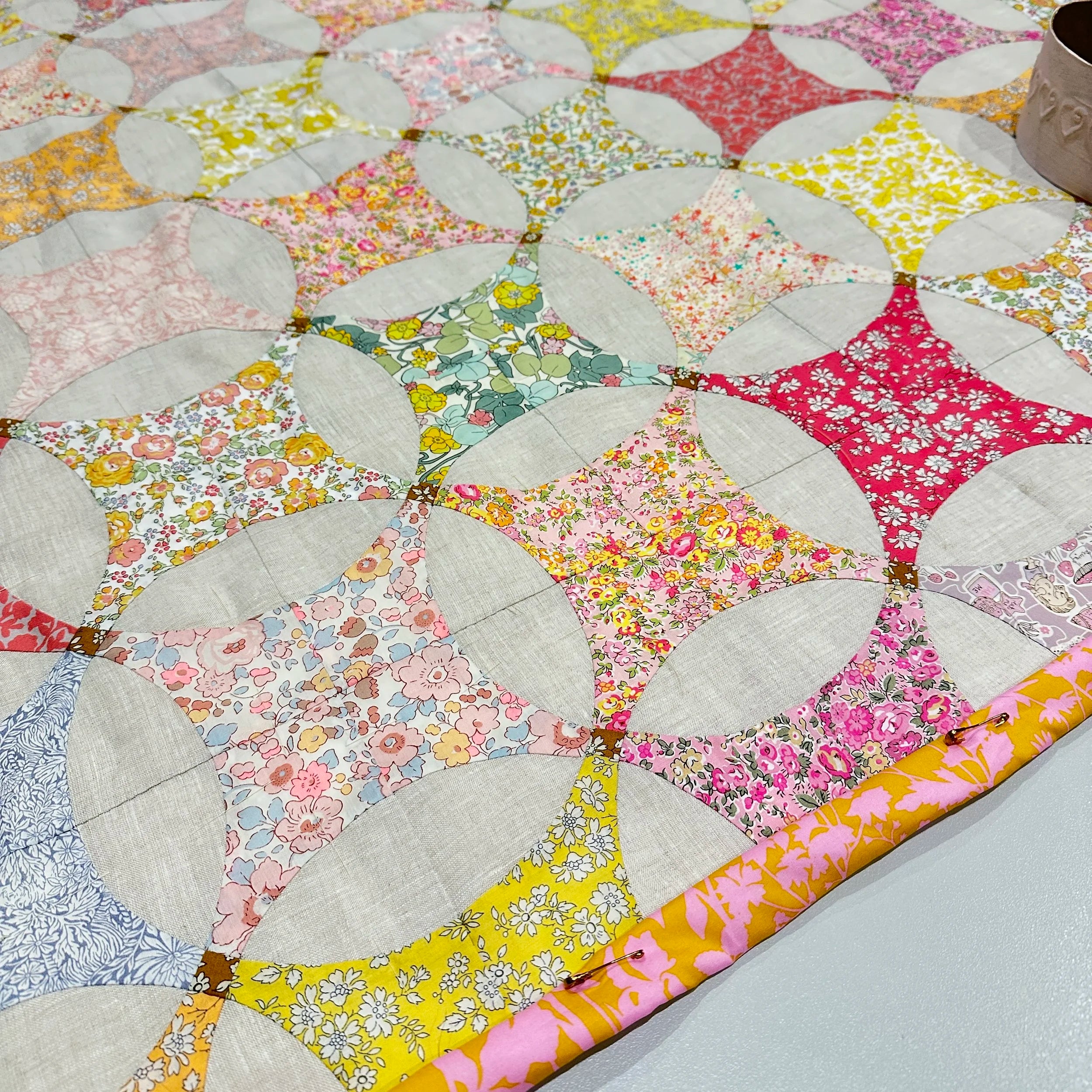 Make your own Lap sized Flowering Snowball Quilt with a divine palette of Liberty Tana Lawn together with the softest Natural Linen.