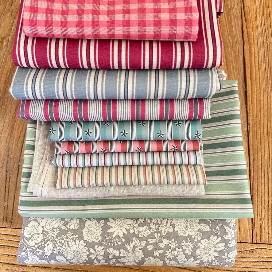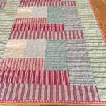 Features: Natural linen, Cotton stripes and Linen/Cotton Stripes for the Quilt top, in addition to Liberty Lasenby Cotton Wideback in Clay for backing and Lucello Pink Check for binding.