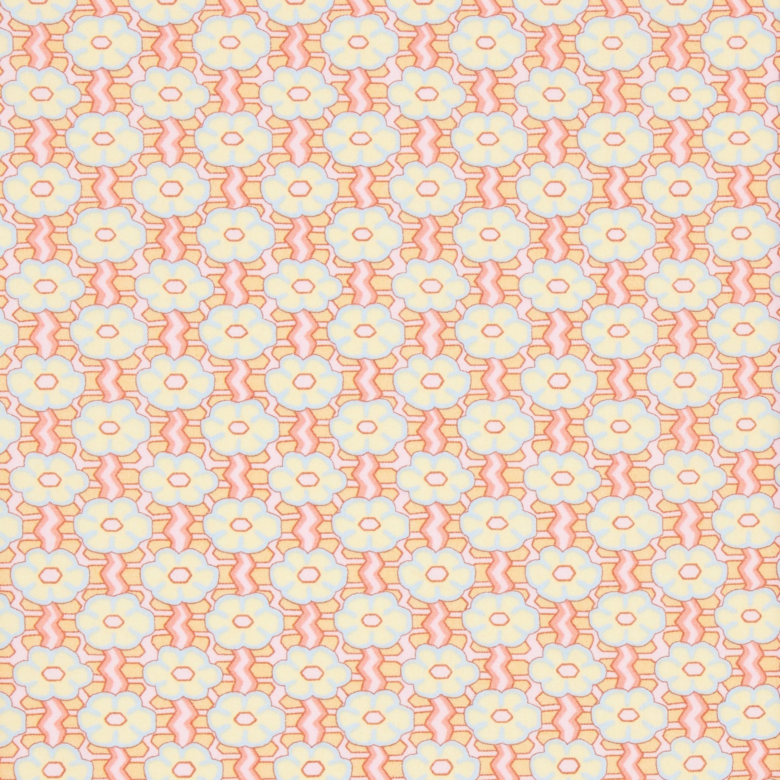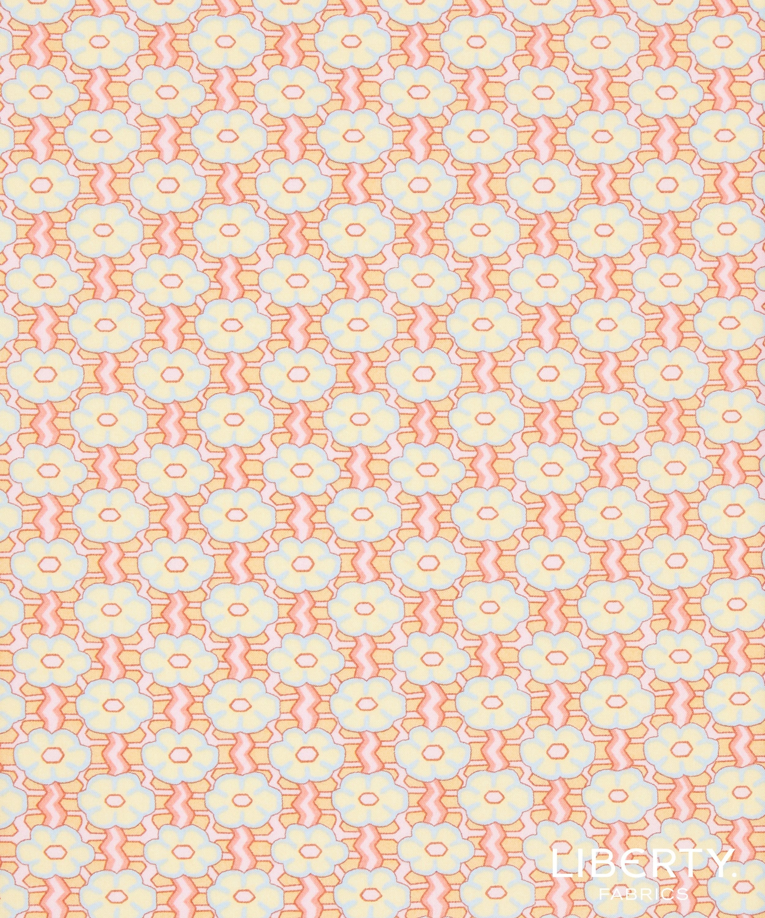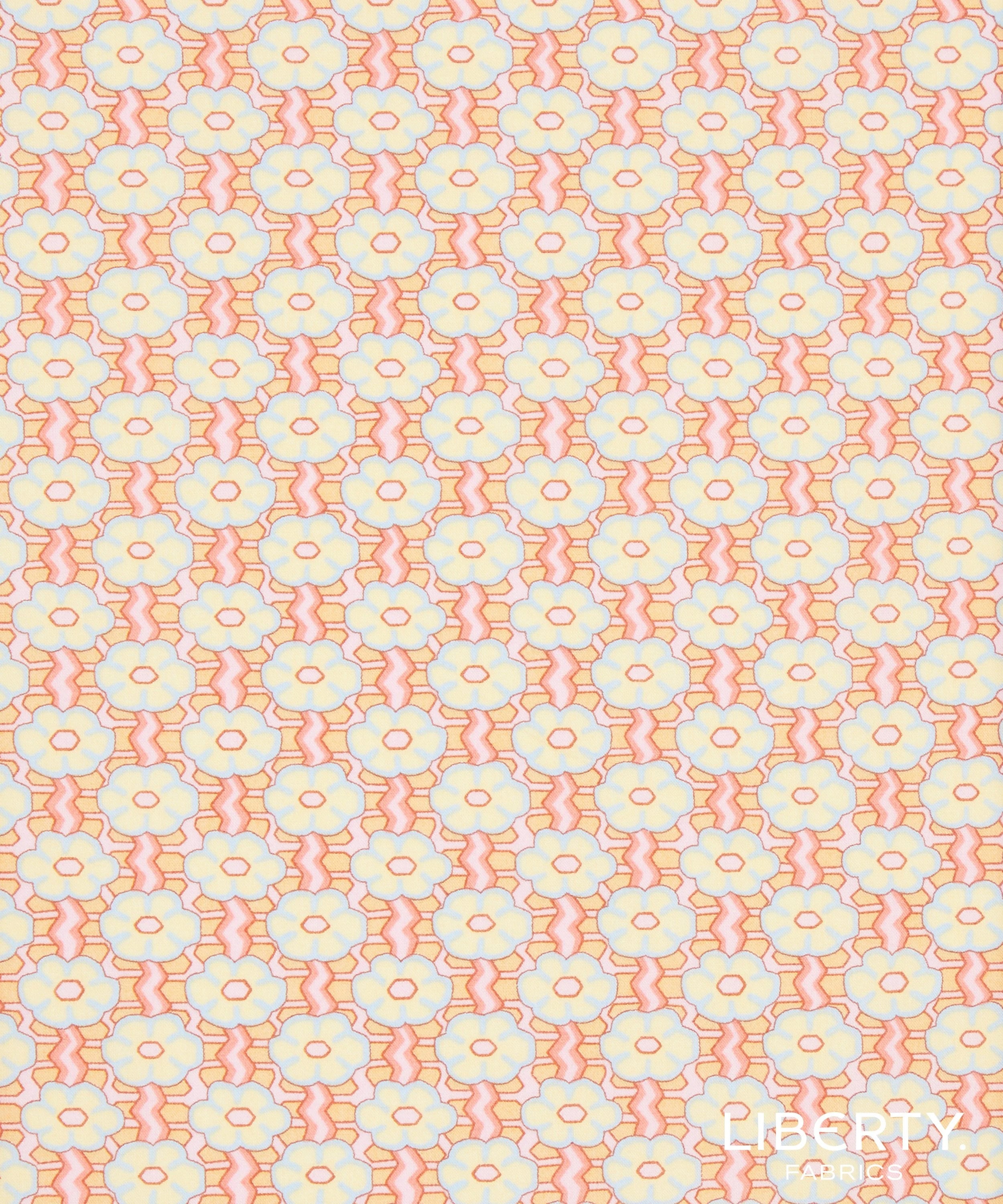 • Based on a tiny, hand-painted border design discovered in the Liberty archive, Ziggy Daisy was reimagined into a checkered grid layout, composed of a simplified daisy motif.