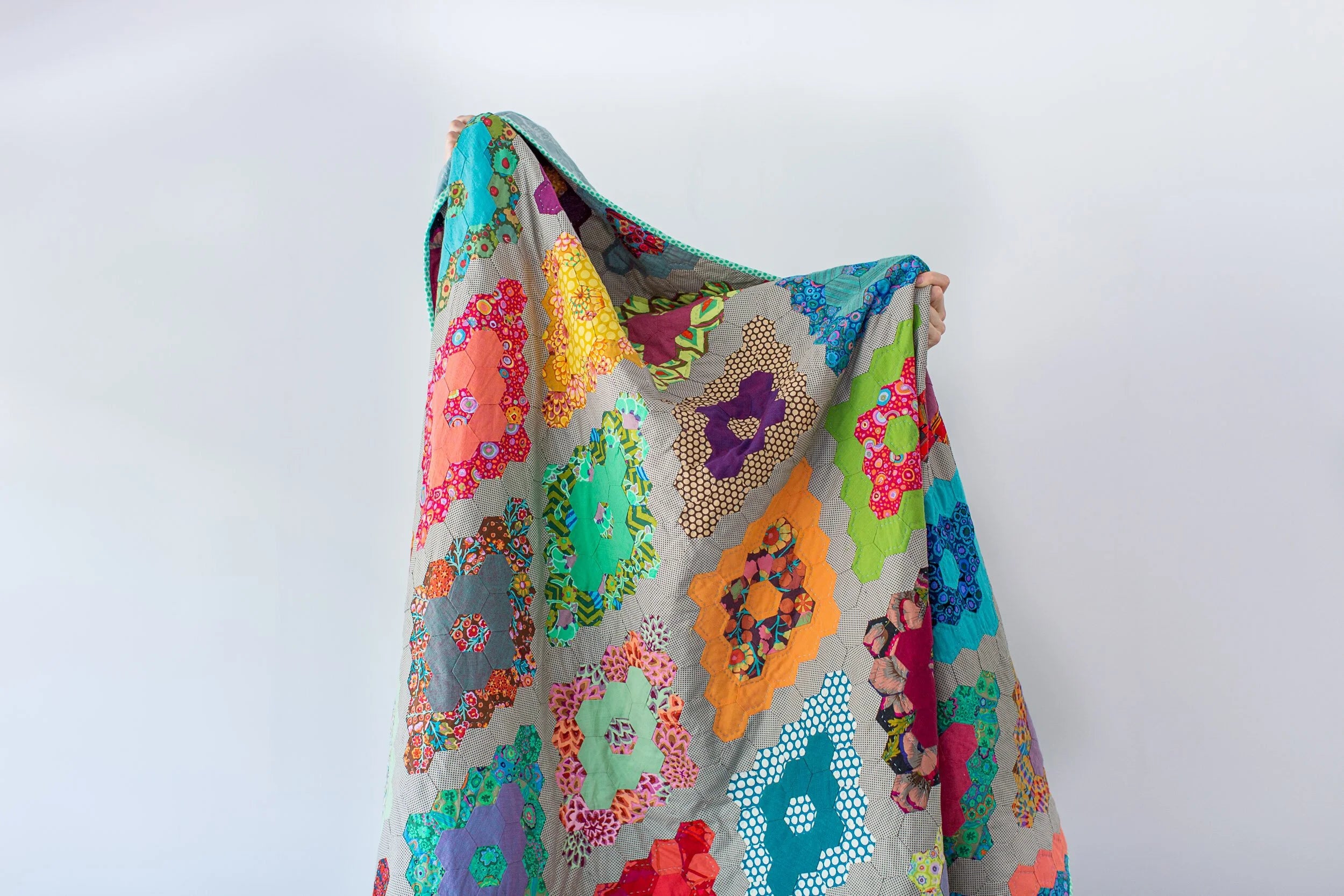 A fantastic hexagon project based on the traditional Field of Diamonds quilt layout. Combine shot cottons with brights fabrics to make this scrappy hand pieced project.