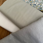 And your choice of background: 1.8m of Lightweight Pale Grey Linen or 2m Sevenberry Grey/White Tiny Spot cotton fabric or 2m White/Silver Gum 1/16th Spot