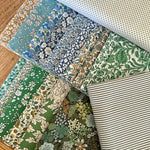 All the Liberty Tana Lawn : 16 x 15cm - Liberty Tana Lawn designs in a botanical palette of green, blue and mustard plus 9 Fat Sixteenths for side blocks.